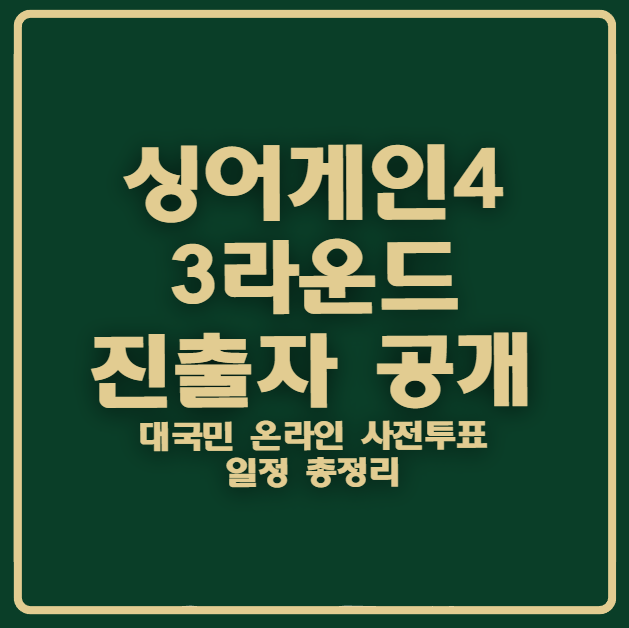 시즌4로 돌아온 무명가수들의 꿈의 무대, 싱어게인4는 2라운드 ‘시대별 명곡 팀 대항전’을 마치고 본격적으로 3라운드 진출자 명단을 확정했습니다. 동시에 대국민 온라인 사전투표(3차)가 진행 중이며, 시청자의 한 표가 다음 라운드 진출과 우승자 선정에 직·간접적으로 영향을 미치고 있어 주목됩니다.