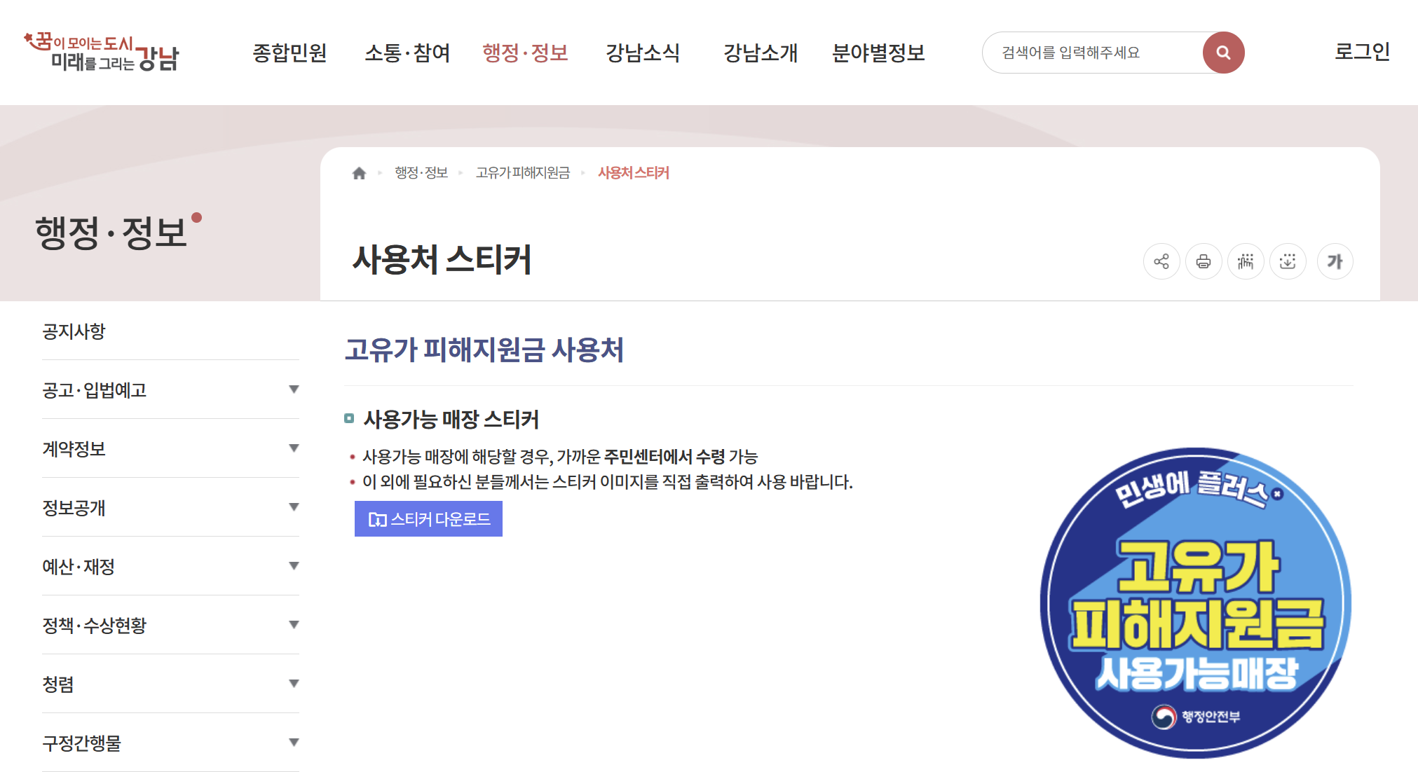 고유가 피해지원금 매장 스티커 다운로드