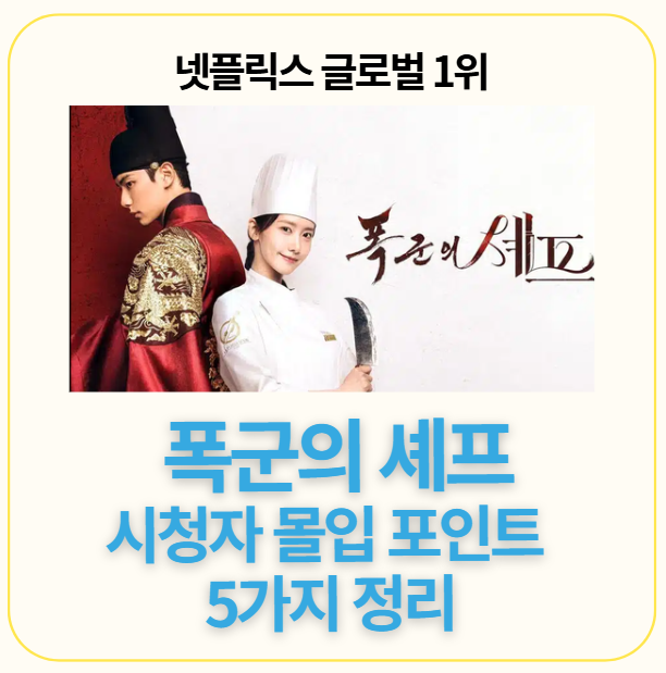 “넷플릭스 1위 드라마 ‘폭군의 셰프’의 음식 연출과 몰입 포인트를 5가지로 정리했습니다.