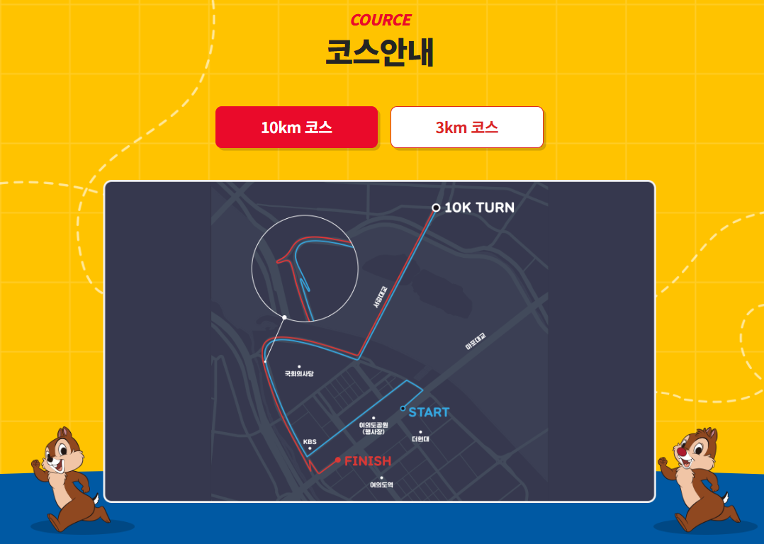 ※ 출발 시간 제한 있음 (3km: 40분, 10km: 90분)