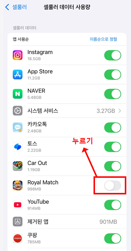 1. 앱의 ‘백그라운드 데이터 사용’
