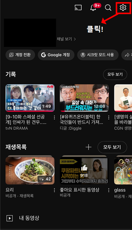- YouTube 앱 → 설정 →