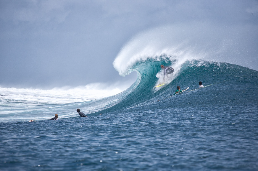 바다에서 커다란 파도가 자신에게 다가오는 장면은 예상치 못한 감정의 폭발이나 환경의 급변을 의미합니다. 불안한 마음이나 외부로부터의 압박감을 느끼고 있을 가능성이 높습니다.