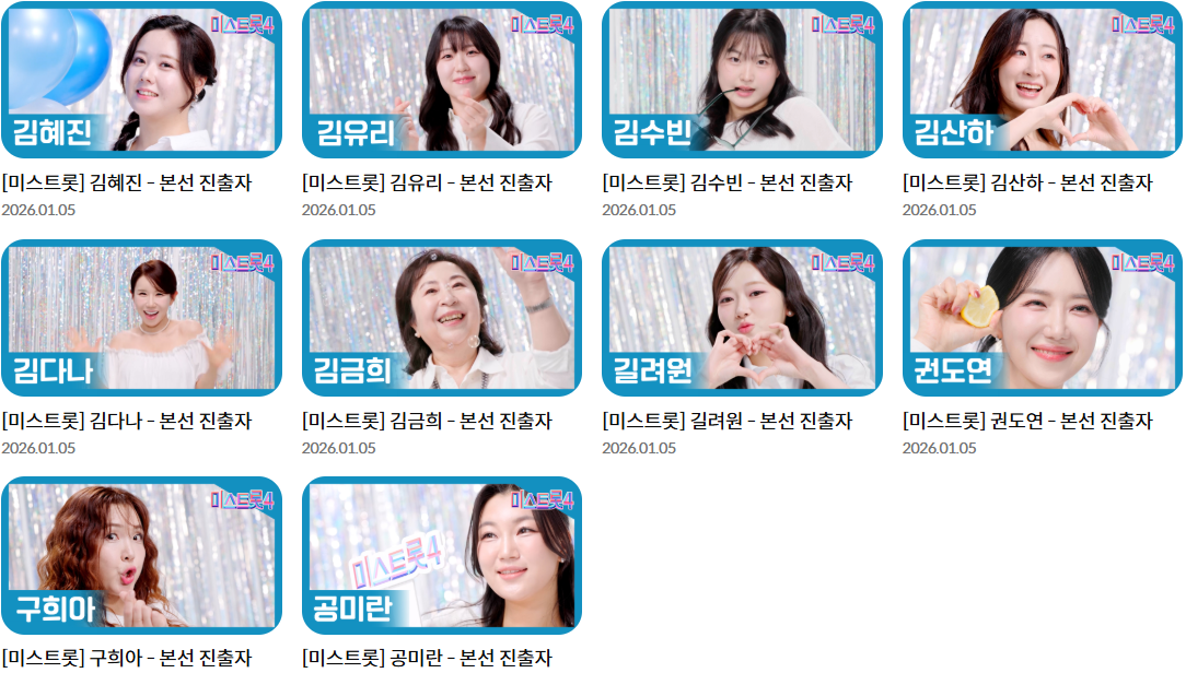 이번 미스트롯4 본선 진출자 명단은 ‘실력+개성+경력’이 균형 있게 섞인 시즌이라는 점에서