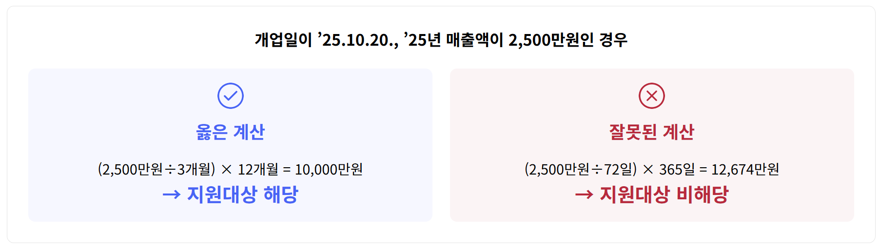 본인 매출·개업 시점·영업 상태를 미리 확인해 두세요.