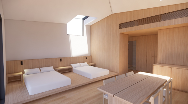 - 총 9,800㎡ 면적, 숙박시설 18동 25실 (2~6인실, 최대 82명 수용)