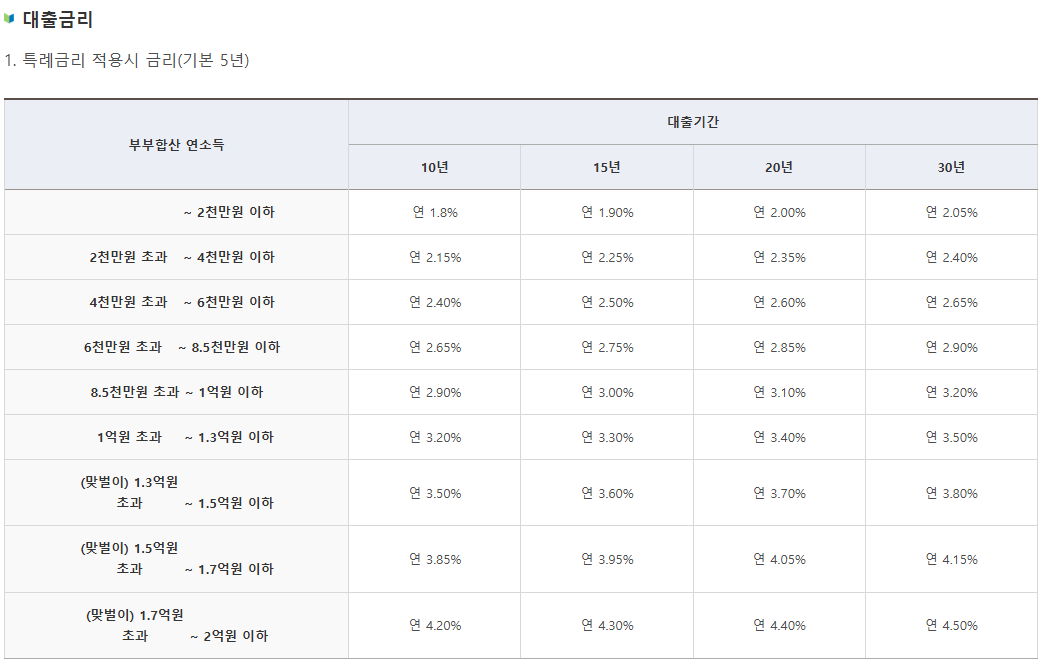 | 소득 기준 | 부부합산 1.3억 이하 (맞벌이 2억 이하) |