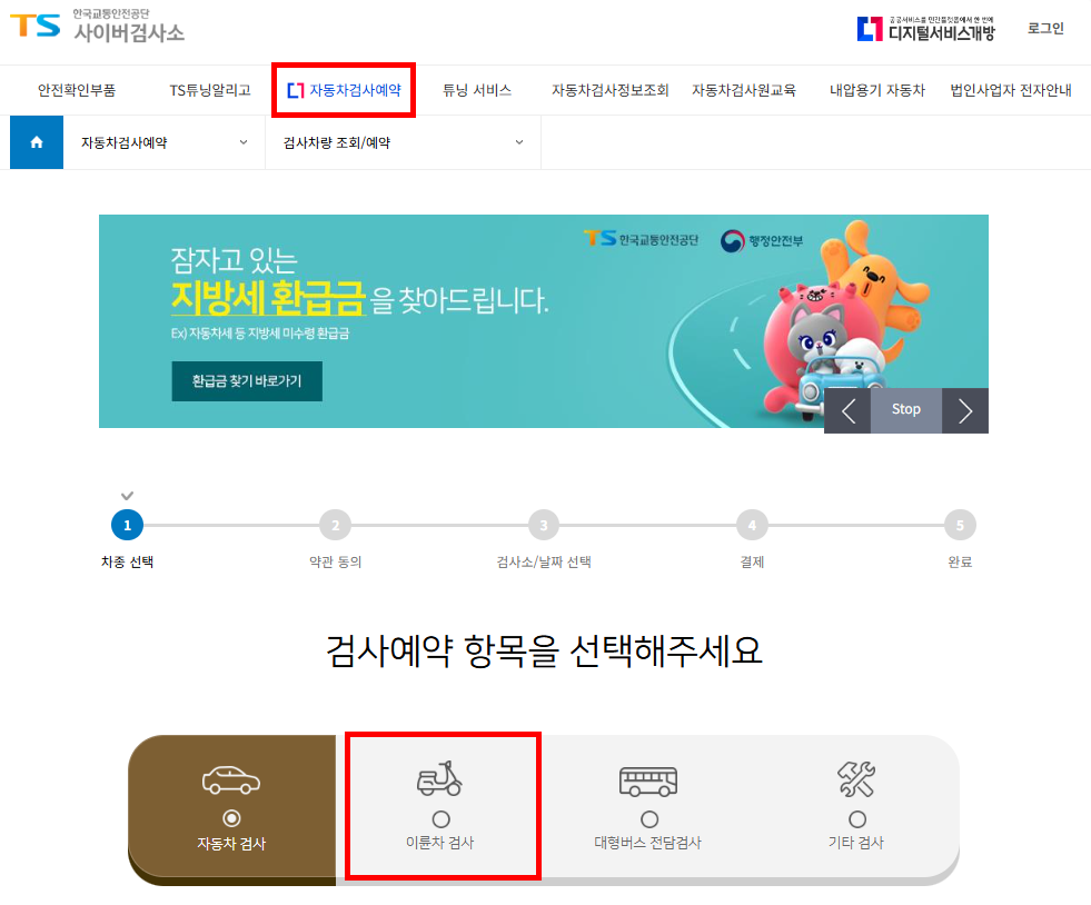 이륜차 검사예약 하기<<