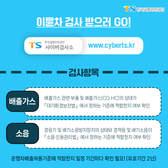 – 배기량 260cc 초과 또는 2018년 이후 등록 차량은 정기검사 대상입니다.