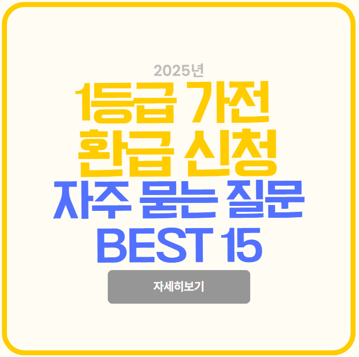오늘 많은 분들이 궁금해하실 1등급 가전 환급 지원금에 대한 모든 것을 준비했습니다. 복잡하게 느껴질 수 있는 지원금 신청 과정, 어떤 질문들이 가장 많을까요?