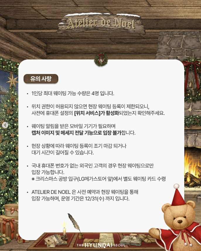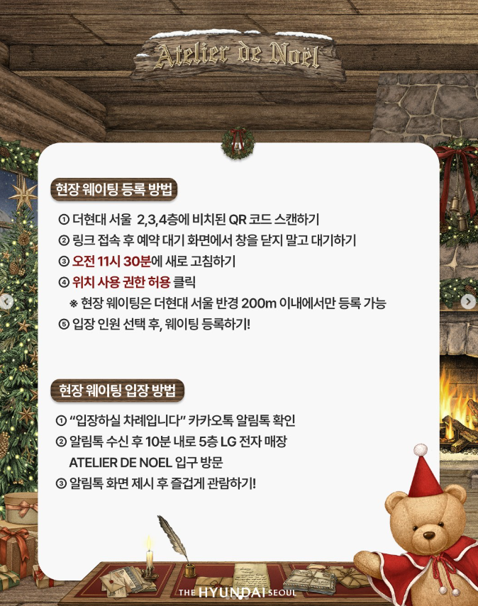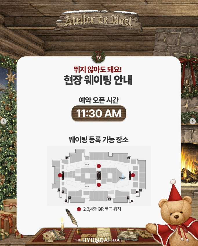 📱 테이블링 앱 설치 후, ‘더현대서울 크리스마스 빌리지’ 검색 → 현장 도착 시 자동 알림 기능 활용