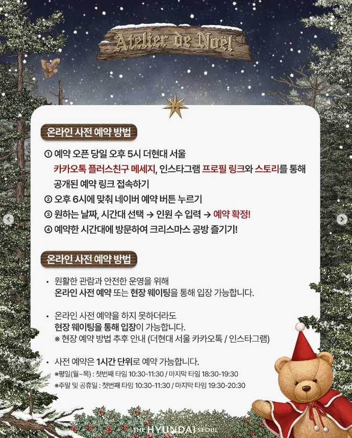 더현대서울 크리스마스 빌리지는 사전 예약자 중심 운영으로,
